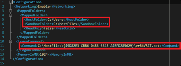 Przykład pliku konfiguracyjnego Windows Sandbox używanego przez MirrorFace.